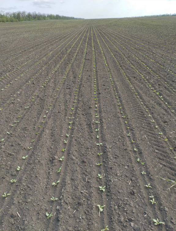 Ниже на фото представлено развитие гибрида сахарной свеклы «бриз» в Ставропольском крае. На 20 апреля средняя густота стояния растений гибрида в южных регионах — 120 тыс. шт./га.