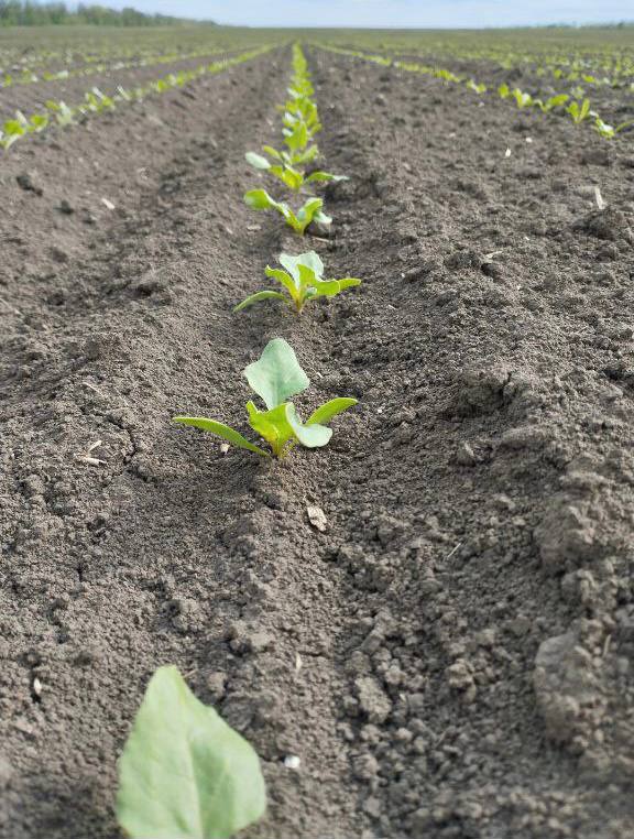 Также, наблюдаем за развитием гибридов «бриз», «прилив» и «волна» в Краснодарском крае. На 27 мая густота стояния растений составила 109-114 тыс. шт./га, фаза развития — смыкание в рядке. Гибриды «СоюзСемСвеклы» устойчивы к засухе и болезням листового аппарата. На фото видно, что листовой аппарат имеет здоровую темно-зеленую окраску.
