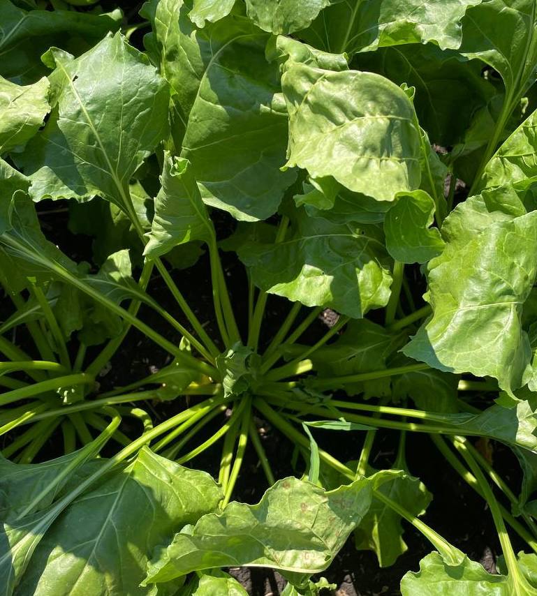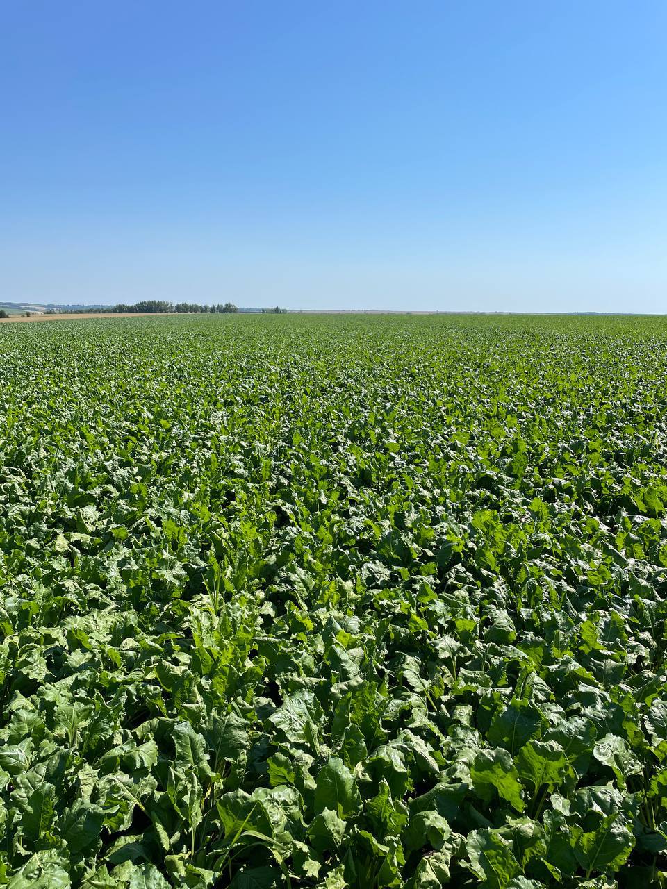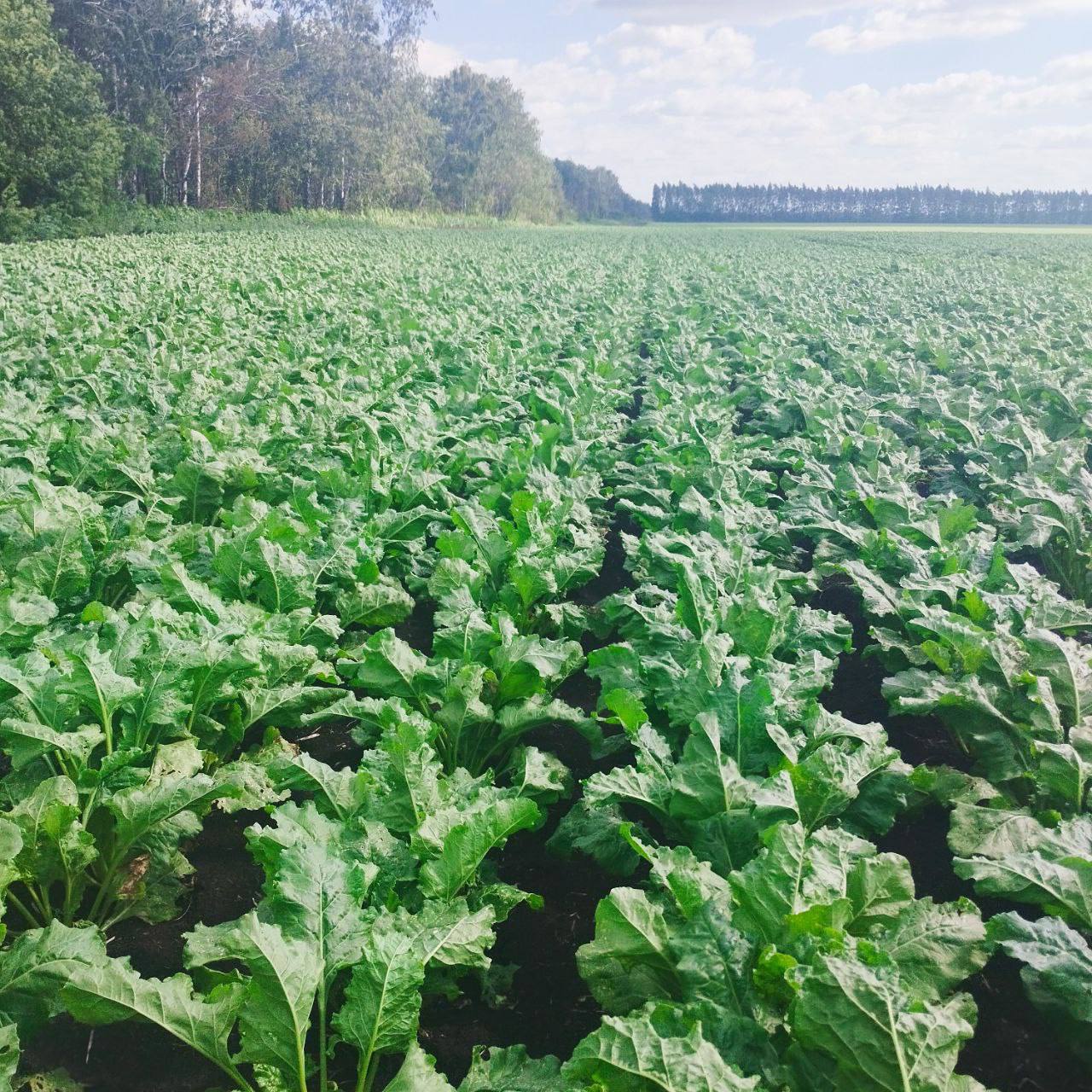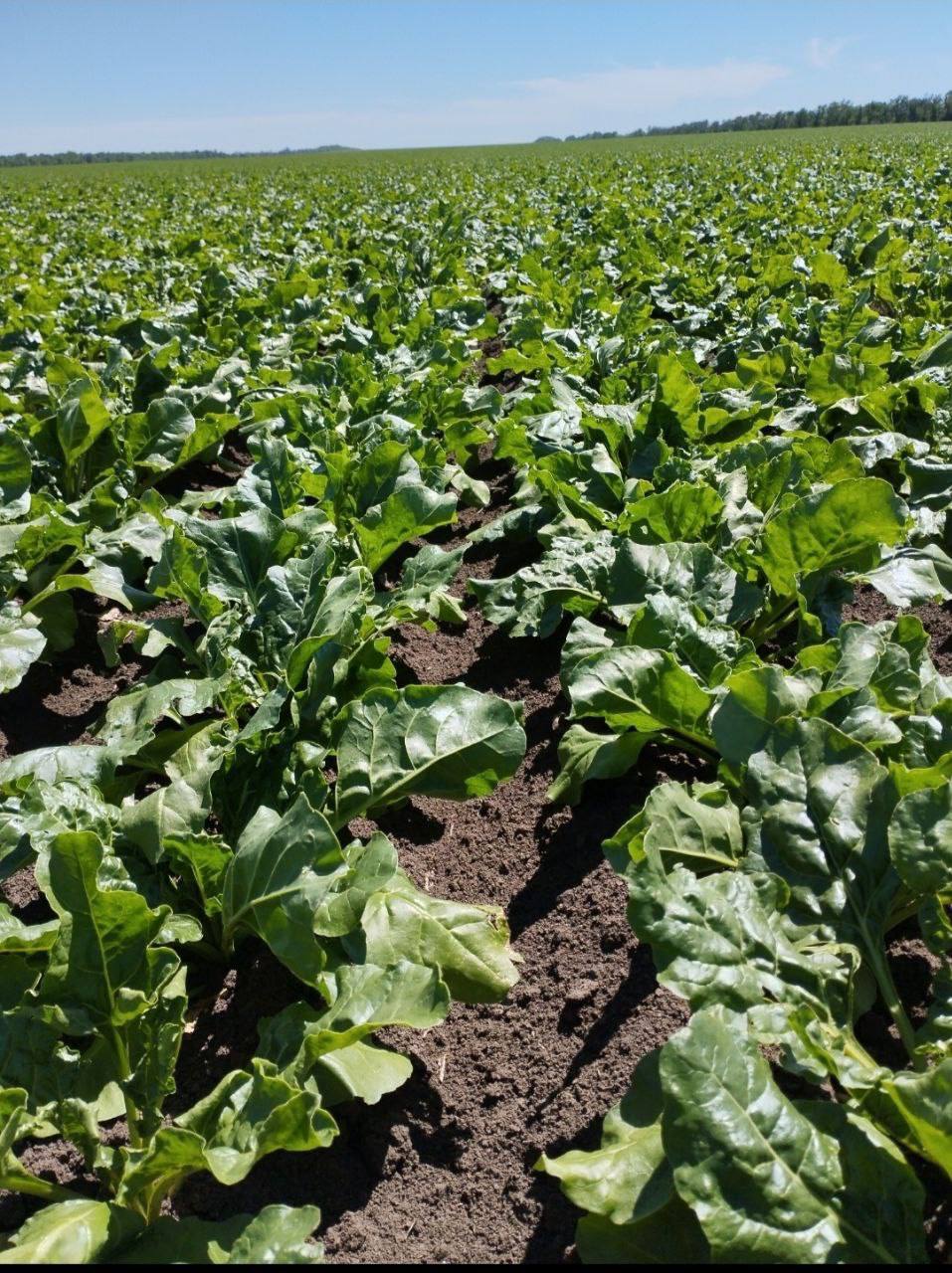 3 июля осмотрели гибрид сахарной свеклы «волна» в Белгородской области. Фаза развития — смыкание междурядий. Насчитывается 18-20 листьев, густота стояния растений — 107 тыс. шт./га. На фото ниже видно, что листовой аппарат имеет здоровую темно-зеленую окраску, отсутствует сорная растительность.