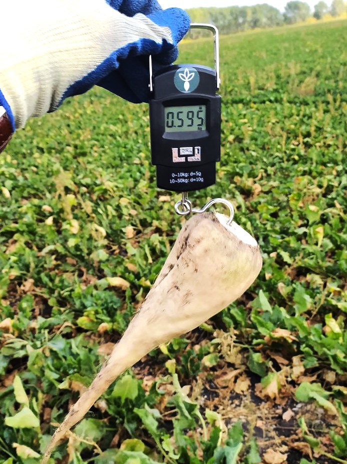 Далее на видео и фото (ниже) представлен производственный участок Аннинского района Воронежской области площадью 50 га с гибридом сахарной свеклы «прилив». По состоянию на 17.09.2024 густота стояния растений составила — 103 тыс. шт./га, биологическая урожайность — 61 т/га, сахаристость — 17,6%. Несмотря на неблагоприятные для формирования урожая погодные условия, а именно высокую температуру воздуха и низкий уровень осадков, «прилив» подтвердил одно из главных своих качеств — высокую устойчивость к засухе!